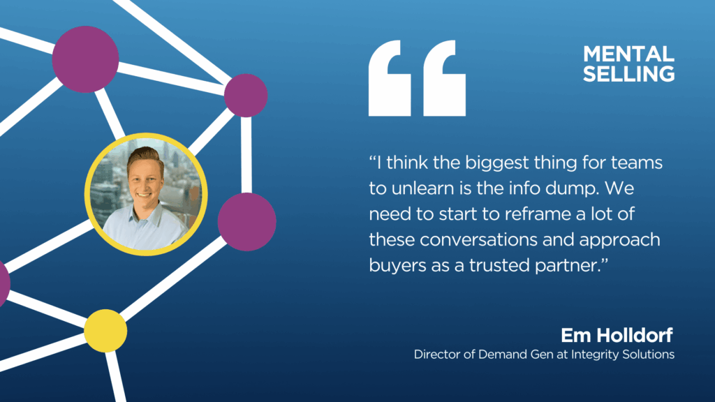 / Resources Getting Buyers to Buy When They’ve Already Made Up Their Minds Guest: Em Holldorf Sales strategies that worked in the past are no longer enough in today’s rapidly evolving market. By the time a buyer engages with a sales team, they’ve often already made up their mind. So how do you break through the noise and stand out in a crowded, info-overloaded world? Em Holldorf, Director of Demand Generation at Integrity Solutions, joins host Hayley Parr to explore how sales teams can adapt to the dramatic shifts in buyer behavior. Em explains why relying on outdated tactics, like generic sales pitches and “info dumps,” won’t cut it in 2026, and shares the tools and strategies that modern sales teams need to succeed. Em dives into the concept of the ‘dark funnel,’ where buyers do all their research and make decisions behind the scenes, and shares how marketers can spot the signals that show when a buyer is ready to engage. She joins Hayley to discuss the importance of human connection and why shifting from transactional sales approaches to trust-based partnerships is key— not just for sales, but for marketing teams looking to stay relevant and aligned with how buyers actually make decisions. Listen Now Amazon More Options Your Host Hayley Parr Head of Marketing, Integrity Solutions In this Mental Selling episode, you’ll learn: The Dark Funnel: Why buyers are forming opinions without your involvement and how to get in front of them before they exclude you. The Info Dump Trap: Why overwhelming prospects with too much information leads to disengagement and how to foster authentic, human conversations instead. Intent Signals: How to recognize the subtle signs that show a lead is ready to buy and how to act on them before they even reach out. Personalized Outreach: How to break through the noise with quality, personalized messages that resonate with today’s self-educated buyers. Sales and Marketing Alignment: How to create seamless communication between teams to deliver the right messages at the right time and close more deals. Jump into the conversation: (00:00) Meet Em Holldorf (02:05) Understanding the dark funnel and its impact on sales (06:19) Why the “info dump” is hurting your sales approach (10:33) Key signals that indicate buyer readiness (14:00) How personalized messaging leads to better engagement (18:45) Aligning sales and marketing for success in 2026 Additional Resources From This Episode: Em Holldorf’s LinkedIn: https://www.linkedin.com/in/emily-holldorf/ Learn more about Integrity Solutions: https://www.integritysolutions.com/ Raise your Mental Selling acumen with us by following us on Apple Podcasts, Spotify, iHeartRadio, Amazon, GoodPods or wherever you get your podcasts. Please rate our show or leave a review— we value YOUR feedback! Salesforce, Cognism, FeedSpot and others have all named us as one of the best sales podcasts for your playlist. And Training Industry, Inc. includes us on their Ultimate L&D Podcast Guide. Share This Post: Related Episodes Niche Down for Stronger Go to Market Focus with Cate Hollowitsch Guest: Cate Hollowitsch In this Mental Selling episode, you’ll learn: Jump into the conversation: Additional Resources From This Episode: Raise your Mental Selling… EP. 127 January 30, 2026 32:11 A Year of Lessons with Mental Selling in 2025 Host: Hayley Parr In this Mental Selling episode, you’ll learn: Jump into the conversation: Additional Resources From This Episode: Raise your Mental Selling… EP. 125 December 31, 2025 18:40 Elevating Sales Outcomes through Rev Ops Excellence with Jess Rose Guest: Jess Rose In this Mental Selling episode, you’ll learn: Jump into the conversation: Additional Resources From This Episode: Raise your Mental Selling… EP. 124 December 18, 2025 26:29 Building Unbreakable Sales Momentum with Shawn Young Guest: Shawn Young In this Mental Selling episode, you’ll learn: Jump into the conversation: Additional Resources From This Episode: Raise your Mental Selling… EP. 123 December 1, 2025 19:39