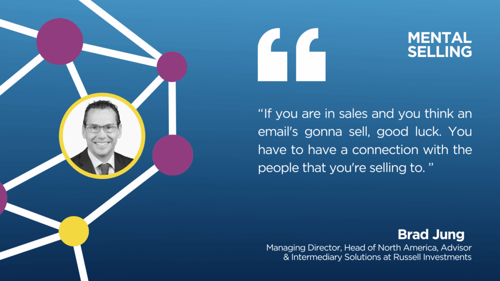 Home / Resilience and Relationships in Wealth Management with Brad Jung Resilience and Relationships in Wealth Management with Brad Jung Guest: Brad Jung Resilience, trust, and personalization are the key ingredients for sales leadership success in today’s evolving market. Brad Jung, Managing Director, Head of North America, Advisor & Intermediary Solutions at Russell Investments, reflects on his journey from a paper route to leading digital strategy and sales teams. He talks about how the focus in sales has shifted from simply pushing products to truly understanding and meeting client needs. Brad also emphasizes the importance of mentorship and nurturing emerging sales talent. He explains how a culture of continuous learning and personal development is key to long-term success. Listen Now Amazon More Options Your Host Hayley Parr Head of Marketing, Integrity Solutions In this Mental Selling episode, you’ll learn: The Power of Resilience: Why top performers excel by staying adaptable through highs and lows. Building Relationships at Scale: How trust and deep listening drive successful sales conversations. The Importance of Personalization: Why leading with process, not just product, sets great salespeople apart. Investing in the Future: How creating a learning culture helps sales teams grow and thrive, and why mentorship plays a key role in team development. Jump into the conversation: (00:00) Meet Brad Jung (02:12) Brad’s journey into financial services (03:57) The mission of financial services (05:52) The importance of personal connection in sales (06:59) Adapting to technology in sales (08:46) Key traits of top performers (11:17) Building trust and emotional connection (13:52) A personal success story (20:41) Training the next generation of sales talent (23:49) Timeless skills and career-changing moments Additional Resources From This Episode: Brad Jung’s LinkedIn: https://www.linkedin.com/in/bradjung/ Learn more about Russell Investments: https://russellinvestments.com/ Learn more about Integrity Solutions: www.integritysolutions.com/ Raise your Mental Selling acumen with us by following us on Apple Podcasts, Spotify, iHeartRadio, Amazon, GoodPods or wherever you get your podcasts. Please rate our show or leave a review— we value YOUR feedback! Salesforce, Cognism, FeedSpot and others have all named us as one of the best sales podcasts for your playlist. And Training Industry, Inc. includes us on their Ultimate L&D Podcast Guide. Share This Post: Related Episodes Keeping Sales Human in the Age of AI with Amara Hunt and Amanda Ervin Guests: Amara Hunt and Amanda Ervin In this Mental Selling episode, you’ll learn: Jump into the conversation: Additional Resources From This Episode: Raise your Mental Selling… EP. 131 April 9, 2026 18:44 Mastering Sales Leadership and Revenue Strategy with Lindsay Rios Guest: Lindsay Rios In this Mental Selling episode, you’ll learn: Jump into the conversation: Additional Resources From This Episode: Raise your Mental Selling… EP. 130 March 12, 2026 35:36 The Mindset Behind Modern Revenue Leadership with Mike Head Guest: Mike Head In this Mental Selling episode, you’ll learn: Jump into the conversation: Additional Resources From This Episode: Raise your Mental Selling… EP. 129 February 27, 2026 25:40 Why Does Integrity in Sales Matter More Than Ever in 2026? With Brian Snader Guest: Brian Snader In this Mental Selling episode, you’ll learn: Jump into the conversation: Additional Resources From This Episode: Raise your Mental Selling… EP. 128 February 12, 2026 9:27